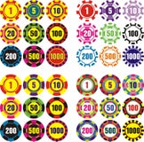 A collection of colorful, circular, numbered tokens with various designs and patterns. Each token has a number in the center, surrounded by a decorative border. The numbers range from 100 to 500, and the tokens are arranged in a grid-like pattern. The colors include shades of yellow, green, red, blue, and purple, with some tokens featuring a combination of these colors. | Casino Chip Royalty Free Stock Photos | cf8c10beb62c7107835ae737e8d0c889cb47b3d473b58552d1a60e6812b9b80e | 001229723821 | 0 | 0 | 61 | 6 | 0 | 0 | |