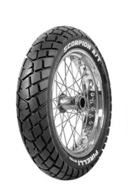 A close-up image of a motorcycle tire with the brand 'SCORPION' and 'AT' visible on the sidewall. The tire has a black sidewall and a white tread pattern. The background is a plain white color. | PNEU PIRELLI SCORPION MT90 A/T 120/80-18 TRAS. | 30f941a8d1e1c12c3d03b3f7d3f2bb2011601eaacb1a6dc952ff0e3ddcf6190f | 001229725116 | 0 | 0 | 35 | 7 | 0 | 0 | |