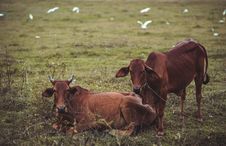 A brown cow is lying down in a grassy field with a few white birds flying in the background. | Free Two Brown Cows Lying And Standing On Green Grass Stock Images - 114603094 | 6ce2cc516bdffcda20afa2f08ee8c71c9ccca109a0626749d0b6faa6498a3188 | 001229724689 | 0 | 0 | 19 | 14 | 0 | 0 | |