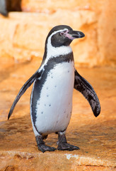 A penguin with black and white feathers is standing on a rocky surface. The penguin has a distinctive black beak and is looking to the side. Its feet are positioned slightly apart, and it appears to be in a relaxed stance. | Portrait of penguin standing on the rock. | c58d7452bebdd094aa7100d284b9c628ab1a8443368329e2a68162baabd414e8 | 001229724698 | 0 | 0 | 41 | 7 | 0 | 0 | |