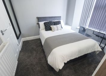 A bedroom with a large bed covered in a grey and white striped blanket. The bed has a grey headboard with a black and white patterned pillow on top. There is a white bedside table with a black lamp on the right side of the bed. The room has grey carpeting and a white radiator under the window. The walls are painted in a light grey color, and there is a white door on the left side of the room. | Thumbnail 5 bedroom terraced house to rent in Sutcliffe Street, Liverpool | b5b7536f327e16e27521e03b3f44cd35f490cb198fbd035d06a1cf985d5a5035 | 001229725271 | 0 | 0 | 80 | 11 | 0 | 0 | |