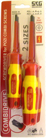 Two red and yellow SK tools are displayed in a packaging box. The tools are labeled 'SK' and '2 3/4 SIZES' with a red and yellow color scheme. The packaging includes a white background with a red border and a yellow label with the SK logo and size information. | SKG Combidrive VDE Screwdriver Set 2pce | b1c31917997a7a8d870dd9dc7a294bed6aaadac41798e9bce10efc14b0c5aeae | 001229717905 | 0 | 0 | 49 | 6 | 0 | 0 | |