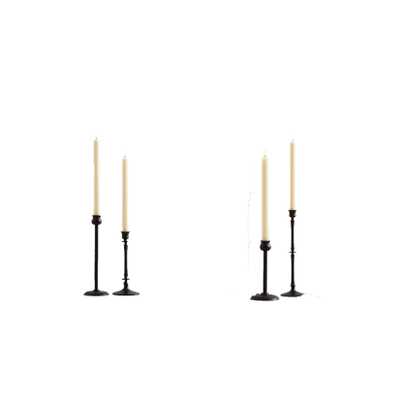A pair of identical black candle holders with a single lit candle in each, placed against a white background. | Booker Candleholders, Bronze Tapers - Set Of 4 - Pottery Barn | a97fe704ef7cd518844299aeb2b8e7435e56e8fcb660086bd7cd05abf479996b | 001229725972 | 0 | 0 | 19 | 11 | 0 | 0 | |