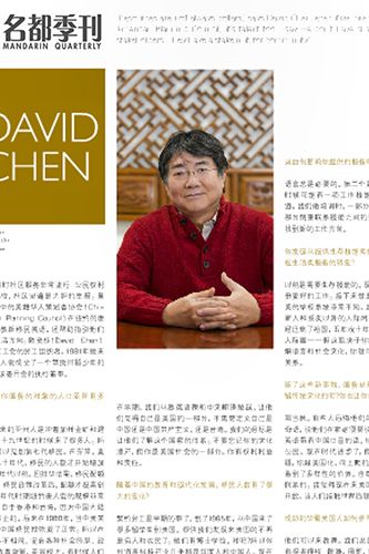 A magazine article with a large image of a man in a red sweater sitting at a desk. The article is in a foreign language, possibly Chinese, with various text blocks and headings surrounding the image. The text is dense and appears to be a mix of body text and headings. The article is titled 'David Chen' and includes a decorative border at the top. | DAVID CHEN, philanthropist. | 363364c78131f4d06f5a86dc69ab98bdc4db4541d70e590c375cf931bf98dd8e | 001229726353 | 0 | 0 | 65 | 3 | 0 | 0 | |
