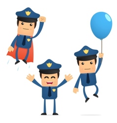 A stylized illustration of three characters, each wearing a blue police officer's uniform with a badge and a tie. The first character is in a dynamic pose with one arm raised and the other extended downwards, as if flying through the air. The second character is standing with a joyful expression, waving both arms. The third character is also standing, with one arm raised and the other extended downwards, similar to the first character. In the background, there is a blue balloon with a reflection on it. | cartoon policeman vector image | e3f2cd18353ac291e78300241585aba6c15e7791bf7bb317e5699ae7067631a5 | 001229727624 | 0 | 0 | 87 | 4 | 0 | 0 | |
