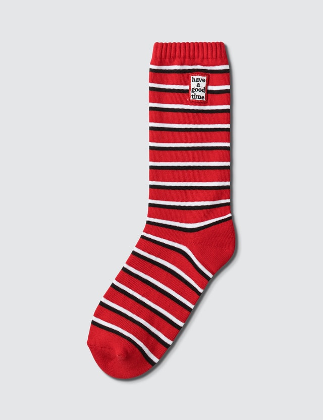 A single red and white striped sock with a white toe and a red heel is displayed against a white background. The sock has a ribbed cuff at the top and a small logo on the left side. | Have A Good Time Frame Stripe Socks | 3164201e388833802c4340cc8997de12bf7e48a358a380b2d8a8f518a8b6d770 | 001229727628 | 0 | 0 | 38 | 7 | 0 | 0 | |