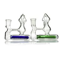 A set of three glass bongs with different colored accents is displayed against a white background. The bongs have a unique, abstract design with a bulbous body and a long, curved neck. The first bong has a blue accent, the second has a green accent, and the third has a yellow accent. Each bong has a small, pointed spout at the top and a flat base at the bottom. | Wholesale Demon Glass - 4.5 Inch Demon Ash Catcher 18mm to 18mm Joint Size Glass Bong Blue Green Color Inline Percolator ASH-P301 | 939d31ebe9ae141a4e41cee7433183fd904ad3cbd151a5fb87ff9b1f1d3d5d1c | 001229727629 | 0 | 0 | 69 | 22 | 0 | 0 | |
