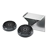 A set of two identical silver ventilation grates is displayed against a white background. Each grate has a circular pattern with a central hole and is surrounded by a square frame. The grates are placed side by side, with one slightly overlapping the other. | Bosch DHZ5275 - Accesorio para chimenea (Negro, Acero inoxidable, Bosch, DWW06W420, DWW06W460, DWW06W450, DWW09W420, DWW09W460, DWW09W450, 1.16 kg, 1. | 34f5bbf09f3810aeee11f1d4cb85821f174a8a996e790574f230a76770c0924f | 001229727797 | 0 | 0 | 44 | 19 | 0 | 0 | |