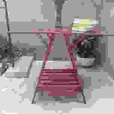 A pixelated image of a pink folding chair with a metal frame, placed on a white floor. The chair is positioned in front of a blurred background that includes a book and a vase. | Departamento Seis Dining roomTables Wood Wood effect | e447da7876246b6b976aba7cb7fd6d997064af1f112a3479a2f5adbab1528dcf | 001229727682 | 0 | 0 | 34 | 7 | 0 | 0 | |
