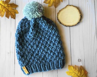 A blue knitted beanie with a pom-pom on top is placed on a white surface. The beanie has a tag with a yellow label attached to it. In the background, there are two pieces of bark and several yellow leaves scattered around. | Knit Slouchy Beanie | 327ebfc1209c5e1e5f8eedf59ad0dc10c9d94a05a3f9a26354855bf0286c577b | 001229727578 | 0 | 0 | 42 | 3 | 0 | 0 | |