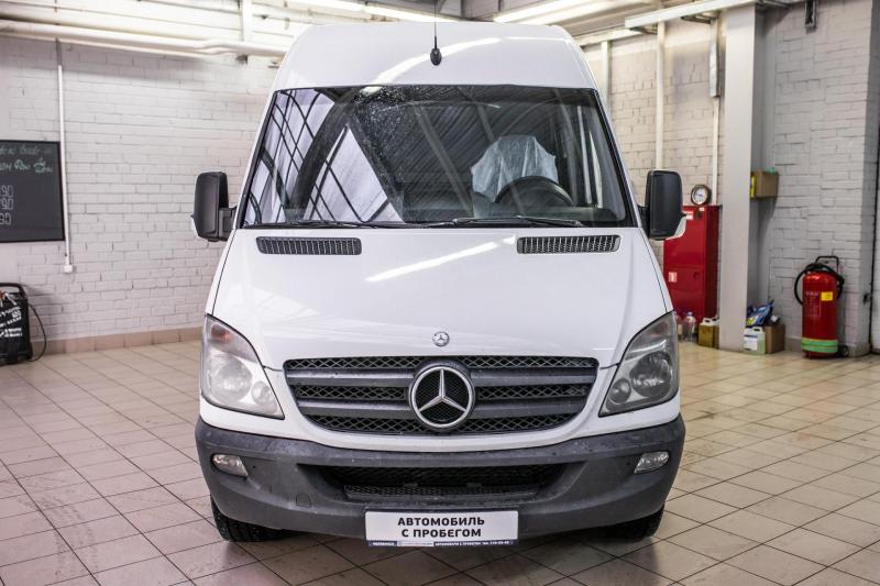 A white Mercedes-Benz van is parked in a garage with a tiled floor. The van has a large windshield, two side mirrors, and a front grille with the Mercedes-Benz logo. There is a white cloth on the driver's seat, and the van appears to be clean and well-maintained. | Mercedes-Benz Sprinter 315 CDI MT L4H3 (150 \xd0\xbb. \xd1\x81.) | b2423c6e076c1ede8f9331ad6418c08f9bbe6c1f62ad6f4463be1c98e01df68b | 001229727520 | 0 | 0 | 48 | 9 | 0 | 0 | |