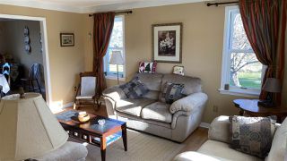 A cozy living room with beige walls and a large window draped with striped curtains. The room features a beige sofa with plaid cushions, a wooden coffee table with a glass top, and a wooden side table with a lamp. There is a framed picture on the wall above the sofa, and a wooden chair with a white cushion is placed near the window. The floor is covered with beige carpeting, and there is a wooden floor lamp near the sofa. | Photo 10: 1284 Granton Abercrombie Road in Abercrombie: 108-Rural Pictou County Residential for sale (Northern Region) : MLS\xc2\xae# 202024104 | 78267d7d619b4e1d1d61c7cd8cd012e1281d6754fd320a698e8370c8852074e2 | 001229727699 | 0 | 0 | 81 | 19 | 0 | 0 | |