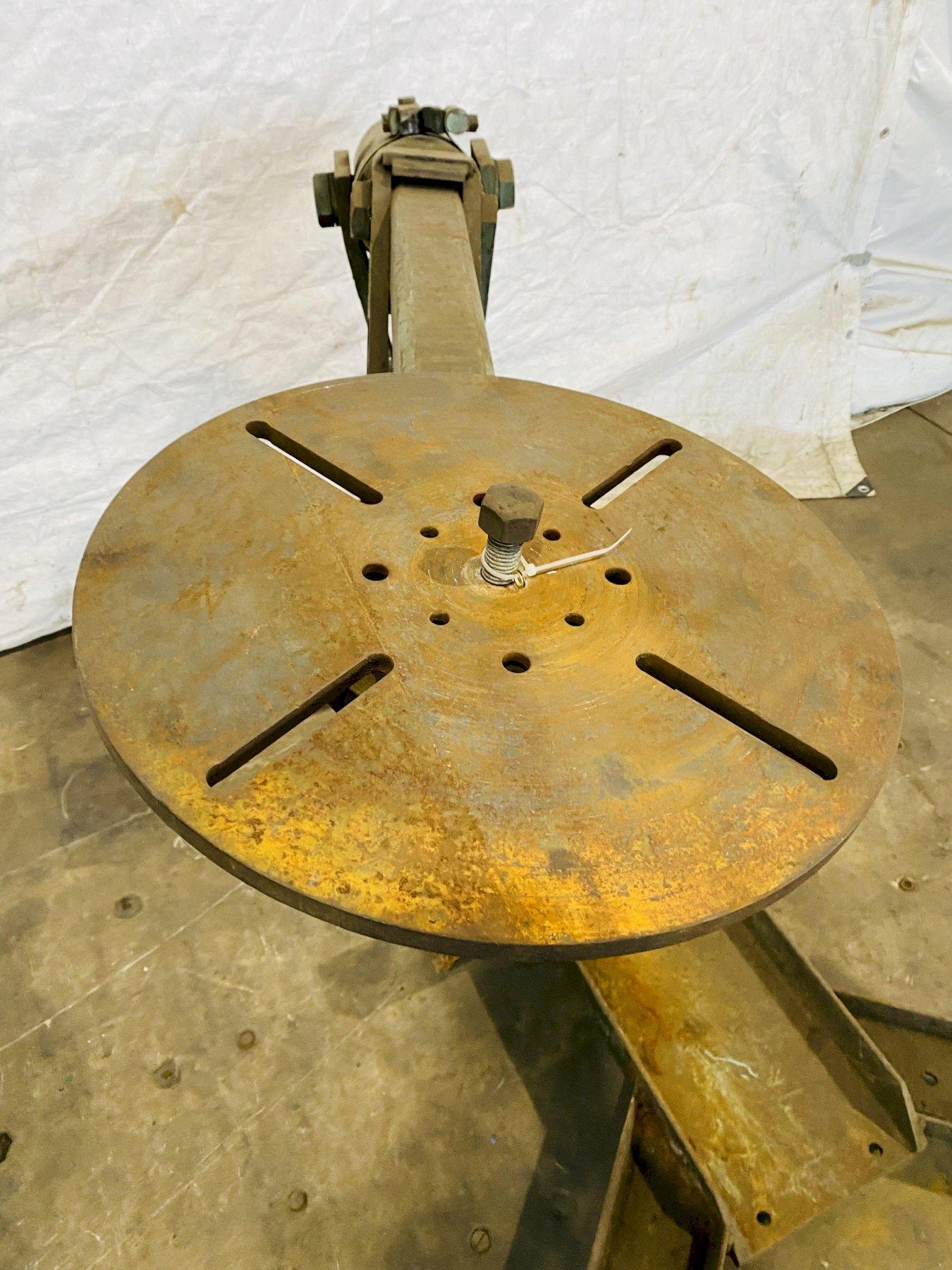 A rusty metal plate with a bolt in the center is attached to a metal arm, which is mounted on a metal base. The plate has a circular shape with a cross-like pattern in the center. The arm and base are also rusty, and the entire setup is placed on a concrete floor with visible cracks and a few small holes. | 2,000 LB ARONSON MODEL SC-2000 BALANCING WELDING POSITIONER. STOCK # 0958321 | f2c946c45a3c6d416d8294f3d81224c81fad93f4e07bab261ac761ad4c722def | 001229728098 | 0 | 0 | 61 | 11 | 0 | 0 | |