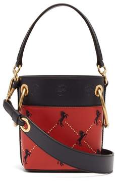 A red and black handbag with a black handle and a gold chain detail is displayed against a white background. The bag features a black strap with a gold buckle and a red interior lining with a black and red pattern. | Chlo\xc3\xa9 Roy Little Horse Embroidered Leather Bucket Bag - Womens - Red Multi | 34bcc769e0b17ac46343df2f29023b278ae500c9bbc137ec2cf0f1dbfaac8755 | 001229729903 | 0 | 0 | 41 | 13 | 0 | 0 | |