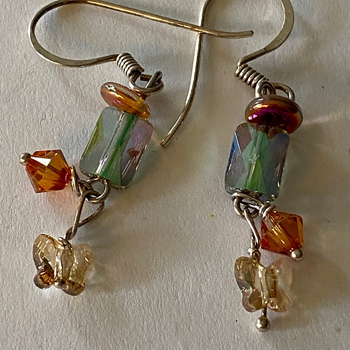 A pair of earrings with a mix of clear and orange glass beads, and a small butterfly-shaped charm with a white and orange pattern. The earrings are attached to a silver hook and have a textured, antique finish. | Swarovski dangle earrings | 5b8556678d108aae1e9fc9d882ba751c688403de4998f3cd6108db1f88983881 | 001229729900 | 0 | 0 | 38 | 3 | 0 | 0 | |
