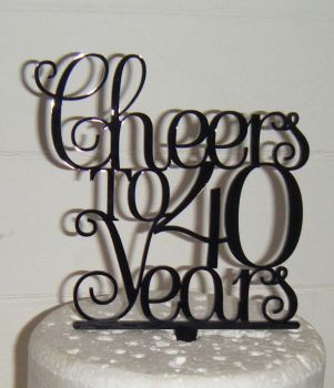 A black metal sculpture of the word 'Cheers' with the numbers '20' and '40' in a cursive font is placed on a white surface with a speckled pattern. The sculpture casts a shadow to the right, indicating a light source from the left. | .....Cheers to 40 years Cake Topper any number, 21, 30, 40, 50, 60, 70etc ANY Number | 9261a6099cc8f388dcc4127239b8da680488d7aebf539cb79718b708eb155a66 | 001229729991 | 0 | 0 | 43 | 16 | 0 | 0 | |