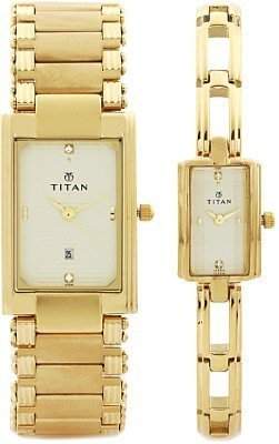 A gold wristwatch with a white dial and gold Roman numerals is displayed against a white background. The watch has a gold metal bracelet with a clasp and is positioned vertically. The watch face shows the time as approximately 10:10, and the brand name 'TITAN' is visible at the bottom of the dial. | Titan 12342163YM02T Analog Watch | 73a6b4cd30011a6b0164919ff81f9103a2b0b307e95e02024ba8b393ed16cf95 | 001229730646 | 0 | 0 | 53 | 4 | 0 | 0 | |