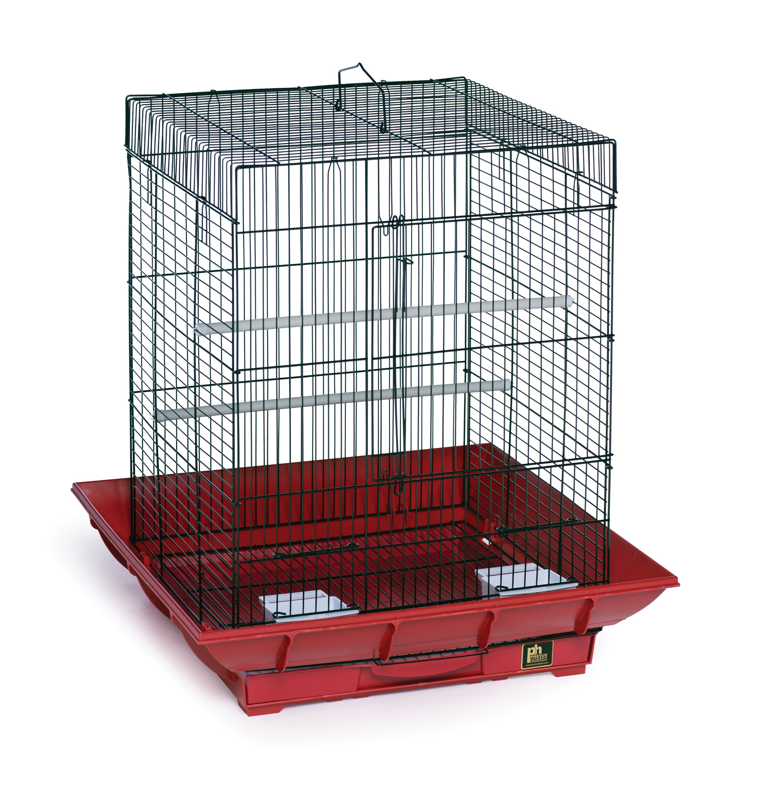 A red plastic birdcage with a metal grid top and bottom is placed on a white background. The cage has a hinged door and a metal handle on top. Inside the cage, there is a red plastic tray with two white paper towels. | Prevue Hendryx SP850R/B Clean Life Cockatiel Cage, Red and Black by Prevue Hendryx | 4ec666cd21e2cdf204457306dcf7c574c245dcd0d70893d83cd82126999e699b | 001229730641 | 0 | 0 | 43 | 13 | 0 | 0 | |