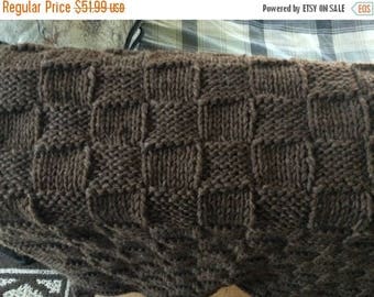 A close-up of a brown knitted blanket with a textured pattern, featuring a prominent diamond-shaped design. The blanket is partially draped over a surface, with a portion of a plaid fabric visible in the background. The image has a promotional tag at the top, indicating a sale price of $19.99. | Christmas in July Knit wool throw/baby blanket (dark brown) | bb7fcad4033177259bf6d6c1cd0ae2729411981be52c06a51bde842a7cffdc53 | 001229730688 | 0 | 0 | 50 | 9 | 0 | 0 |