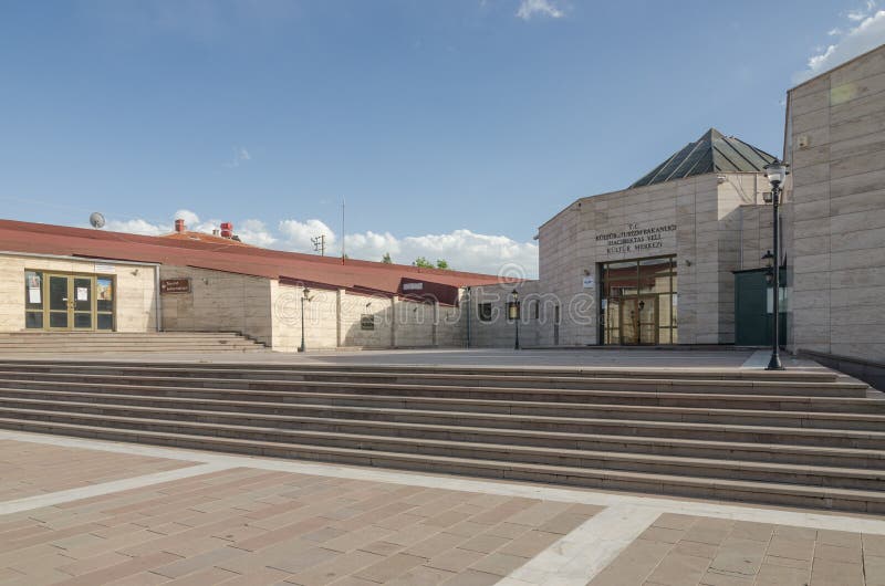 A modern building with a flat roof and a large glass entrance is surrounded by a paved area with a set of stairs leading up to it. The building is made of stone and has a simple design with a flat roof. The sky is clear and blue, and there are no visible people or vehicles around the building. | Haji Bektash Veli Museum photographie stock | 7924c346ef63609aa184722812ae4bc13dc60520549041ccf2a8bbbdc8e065b3 | 001229730658 | 0 | 0 | 59 | 6 | 0 | 0 | |