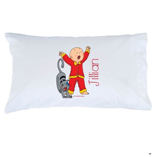 A white pillow with a cartoon character of a boy in a red outfit and a cat standing on its hind legs, both with arms raised in a 'V' shape. The character's name 'JILLIAN' is written in red cursive script on the pillow. | Caillou Stretch Gilbert Pillowcase | c361828e8017a20bda7cd9c8ef8aa2298c9231373e5d499c5e70ce3d17a4cf14 | 001229731038 | 0 | 0 | 43 | 4 | 0 | 0 | |