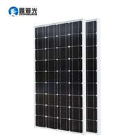 A modern solar panel with a sleek design and a white frame is displayed against a white background. The panel has a grid of dark blue squares with white borders, and the manufacturer's logo is visible in the top left corner.