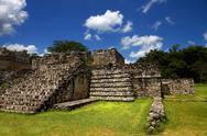 Buja zöld mező nagy, ősi kőszerkezettel a közepén. A szerkezet több szintes, kőlépcsők vezetnek fel hozzá. Tiszta az ég, kevés felhő, a háttérben fák láthatók.