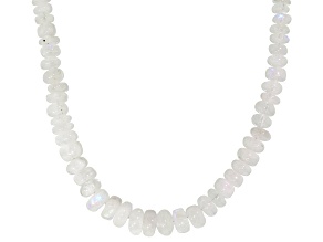 A close-up image of a white pearl necklace with a smooth, lustrous surface. The pearls are of varying sizes and are strung together with a subtle sheen. The background is a plain, light color, highlighting the pearls' natural beauty.