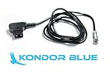 Egy fekete tápkábel fekete dugóval és fehér csatlakozóval van feltekerve fehér alapon. A zsinór kék színű címkével rendelkezik a „KONDO BLUE” szöveggel és egy stilizált kék logóval.