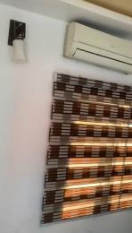 Barna és bézs mintás redőnnyel ellátott ablak fölé falra szerelhető klímaberendezés van felszerelve. A légkondicionáló fehér külsővel rendelkezik, a bal felső sarokban található vezérlőpanellel. Az ablakot részben lefedi a roló, ami részben be van húzva, így némi fény behatol a szobába.