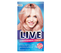 A Schwarzkopf „Live” nevű hajfestékének kék csomagolása. A csomagoláson egy szőke hajú nő látható az elején, a termék leírása pedig „Lightener & Twister”. A csomagolás tartalmaz egy listát az előnyökről is, mint például: „Hangossá teszi a hangot”, „Hűsíti a meleg tónusokat”, „Akár 7 fokozatot emel”, „Akár 5 fokozatot emel”, „Akár 3 fokozatot emel”, „Felemel”. 2 szintre”, „1 szintig emel”, „0-ig emel.