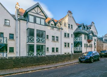 A row of traditional European-style buildings with multiple stories and gabled roofs. The buildings are painted in a light beige color and feature white-framed windows. A stone wall runs along the sidewalk, and there are no visible signs of modernity or contemporary architecture.