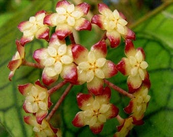 A close-up image of a cluster of red and white flowers with yellow centers. The flowers are densely packed and appear to be in full bloom. The background is out of focus, with hints of green leaves and a blurred background that suggests a natural setting.