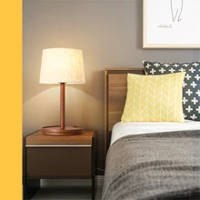 Egy hálószoba jelenet, jobb oldalon egy ágy, szürke takaróval és két párnával letakarva. A bal oldali párna sárga, geometrikus mintázattal, a jobb oldali kék, hasonló mintával. Az ágy mellé egy fiókos fa éjjeliszekrény került, a tetején pedig egy barna lámpa bézs színű lámpaernyővel. Az ágy mögötti fal világosszürke színű, az ágy fölött pedig egy bekeretezett kép lóg a falon.