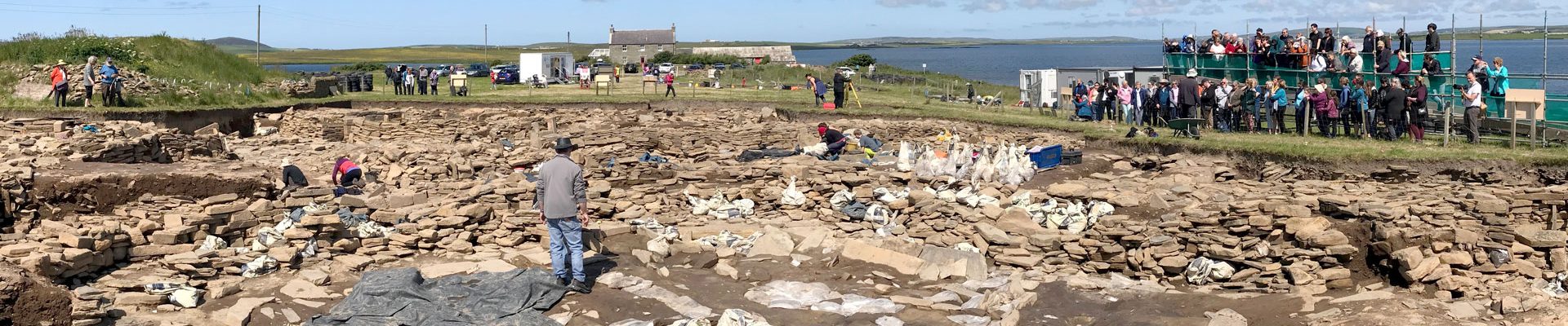 Egy ember áll egy mély, keskeny árok szélén, meredek falakkal, és lenéz a szakadékba. Az árkot egy füves terület veszi körül, ahol néhány elszórt ember és tárgy található. A háttérben egy víztest és egy épület látható. Az ég tiszta és kék.