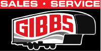 The second image is a stylized logo for 'Gibbs Sales & Service'. The logo features a red and white design with the word 'Gibbs' prominently displayed in the center. The logo includes a stylized representation of a car with a red and white color scheme, and the words 'Sales' and 'Service' are written in a smaller font at the top and bottom of the logo, respectively. The background is black, which contrasts with the red and white elements of the logo.