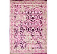 A close-up view of a pink and beige patterned rug with intricate designs. The rug has a detailed border and a central medallion with a floral motif. The image is in focus, highlighting the texture and colors of the rug.