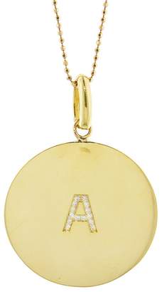 A gold pendant with a diamond-studded letter 'A' is displayed against a white background.
