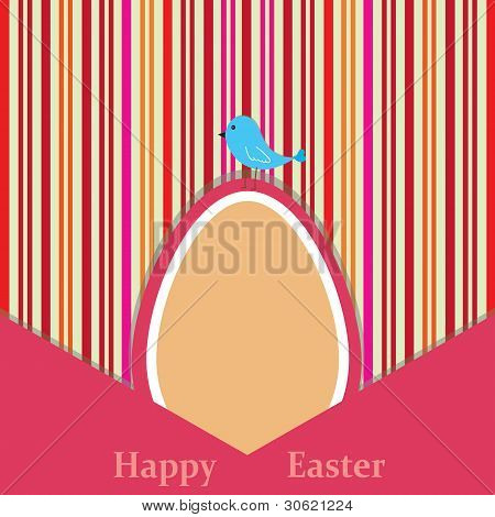The second image shows a stylized Easter card with a pink background featuring vertical stripes in shades of pink, red, and white. A blue bird is perched on the top of the card, and the word 'EASTER' is written in large, bold letters at the bottom. The card has a three-dimensional effect with a pink and white striped border framing the image.