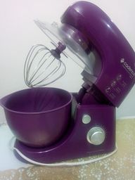 A close-up image of a red lip gloss tube with a gold cap, placed on a purple surface. The tube is positioned diagonally, with the cap on the left side and the nozzle on the right side. The nozzle has a white cap on it. The background is a plain purple color.