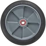 A close-up image of a tire with a silver rim. The tire is centered in the frame, and the rim has a circular pattern with a red center. The tire appears to be new and unused, with no visible wear or damage.