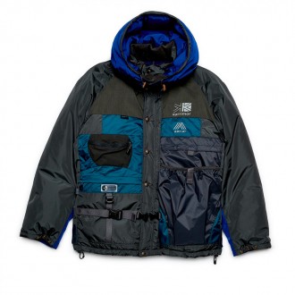 Fehér háttér előtt egy kapucnis kék-fekete télikabát jelenik meg. A kabát cipzárral záródik és több zsebbel rendelkezik, köztük egy cipzáros mellzseb és egy kisebb zseb a bal oldalon. A kabát jobb mellrészén logó is található.