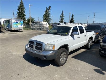 A white pickup truck is parked in a lot with a trailer and a car in the background.