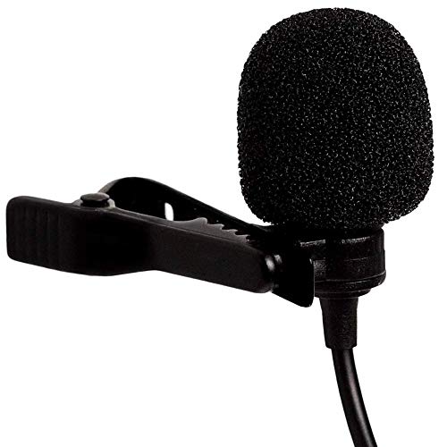 A black foam windscreen is attached to a microphone stand.