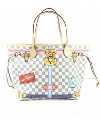 A white handbag with a gold buckle and a small red and white logo on the side is displayed against a white background.
