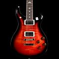 Közeli kép egy piros elektromos gitárról fekete hangvédővel és fekete fogólappal. A gitár hat húrú, és sötét háttér előtt helyezkedik el.