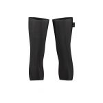 A pair of black, knee-high, stretchy leggings with a zipper on the right leg.