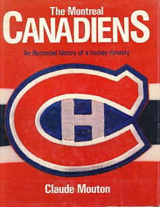 A book cover titled 'The Montreal Canadiens: An Illustrated History of a Hockey Dynasty' with a red and blue logo of the Montreal Canadiens hockey team.