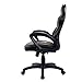 A black office chair with a high backrest, armrests, and a five-wheel base. The chair has a mesh back and a padded seat with a black fabric cover.