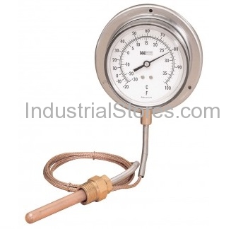 A silver analog pressure gauge with a wooden handle and a copper hose attached to it, displayed against a white background. The gauge has a black face with white markings and a needle pointing to the number 15. The gauge is labeled 'INSTRUMENT STYLES.COM' on the right side.